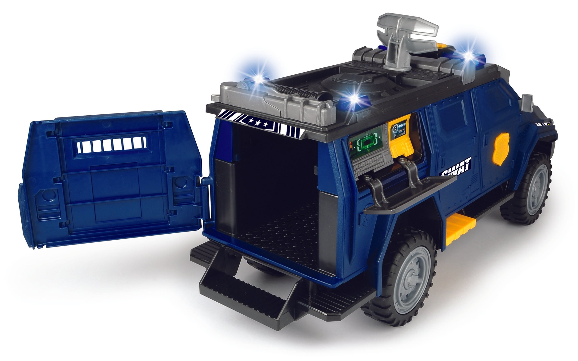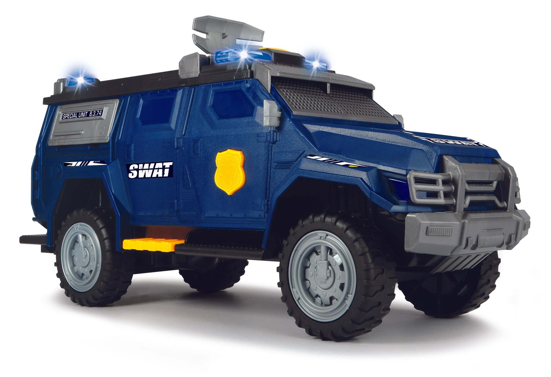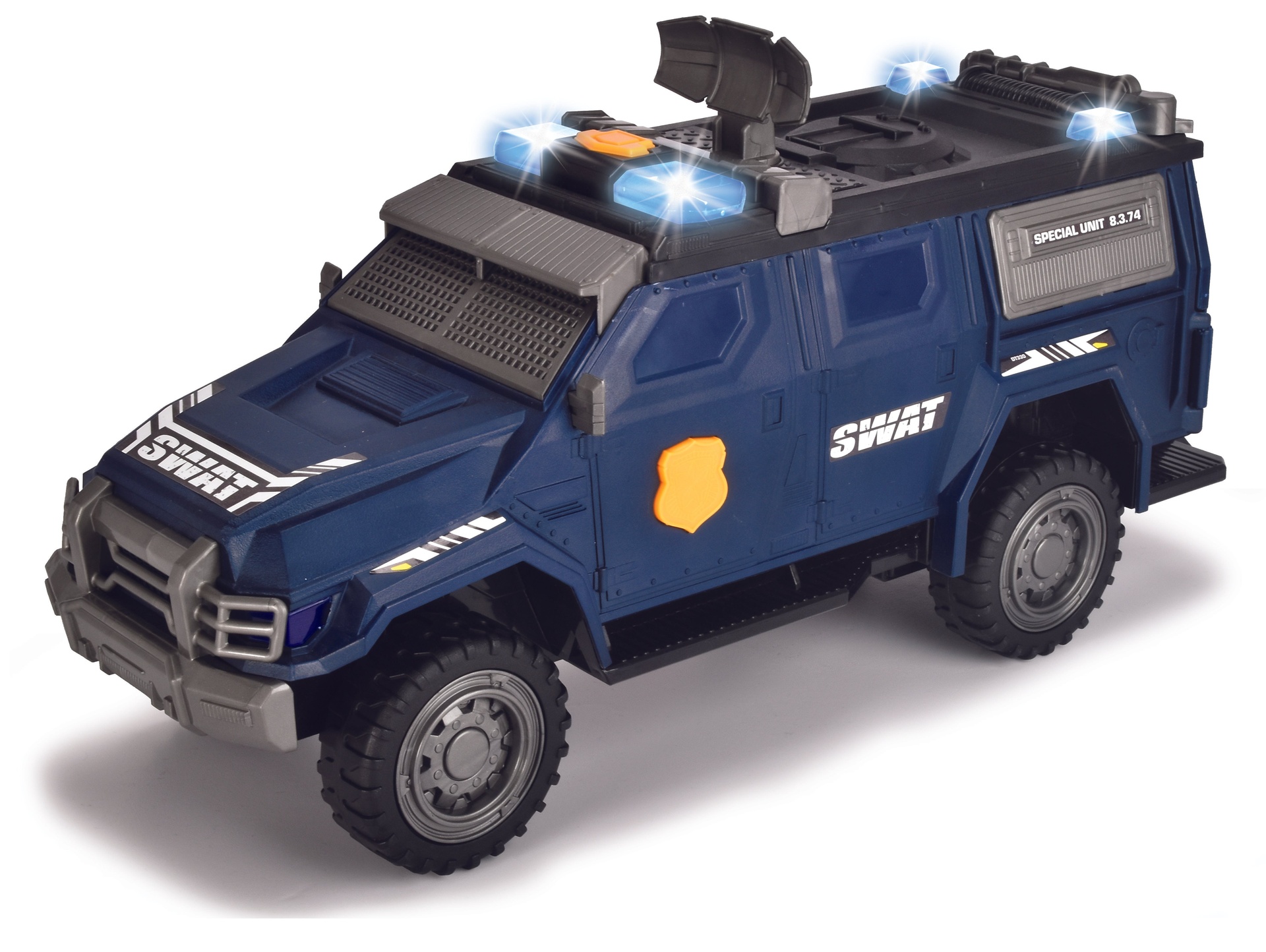 تخرج الوحدة الخاصة من سلسلة ألعاب Dickie Toys Action مباشرة من قضايا الشرطة الخاصة. تساعد سيارة الدفع الرباعي اللعبة المزودة بالضوء والصوت والرادار الدوار في العثور على الأشرار. الأبواب المفتوحة هي دعوة للنظر إلى الداخل وتحفيز الخيال. يتم تضمين البطاريات ويمكن للأطفال من سن ثلاث سنوات فما فوق البدء في حل القضية على الفور.