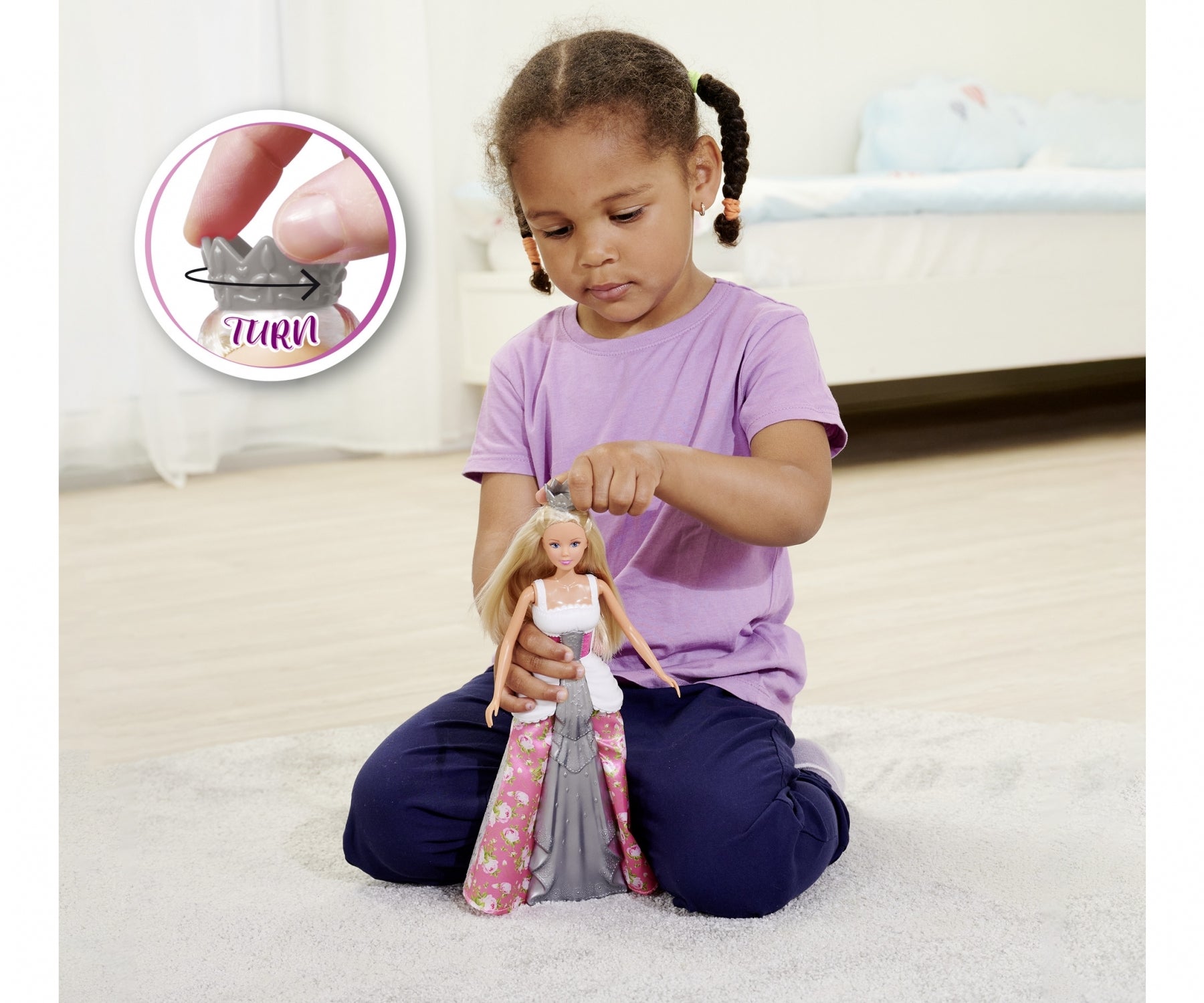 • الفستان السحري - ترتدي ستيفي فستانًا سحريًا يمكن تغيير لونه عن طريق تدوير التاج. يمكن للأطفال أن يقرروا بأنفسهم الزي الذي يجب أن ترتديه ستيفي عن طريق تدوير التاج.