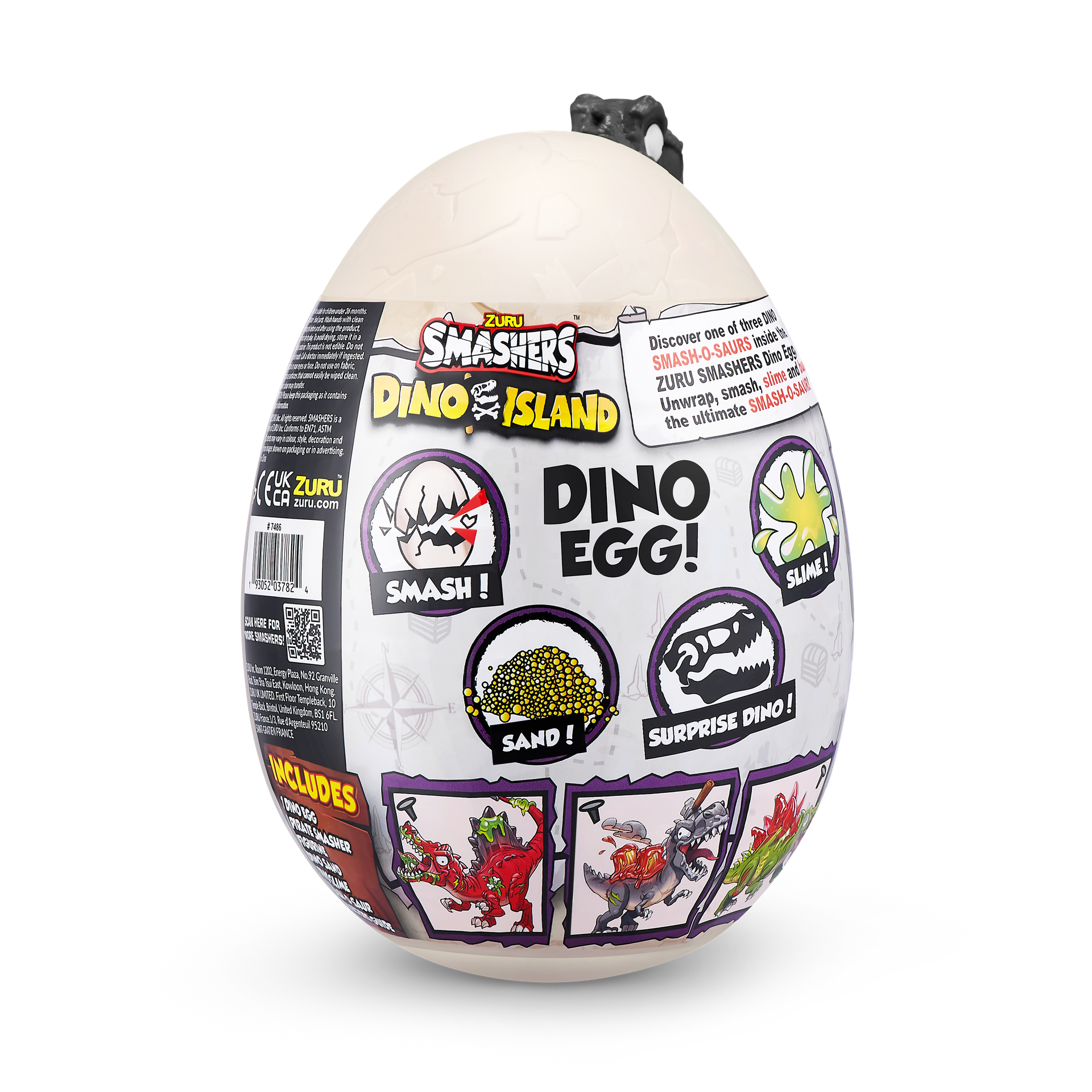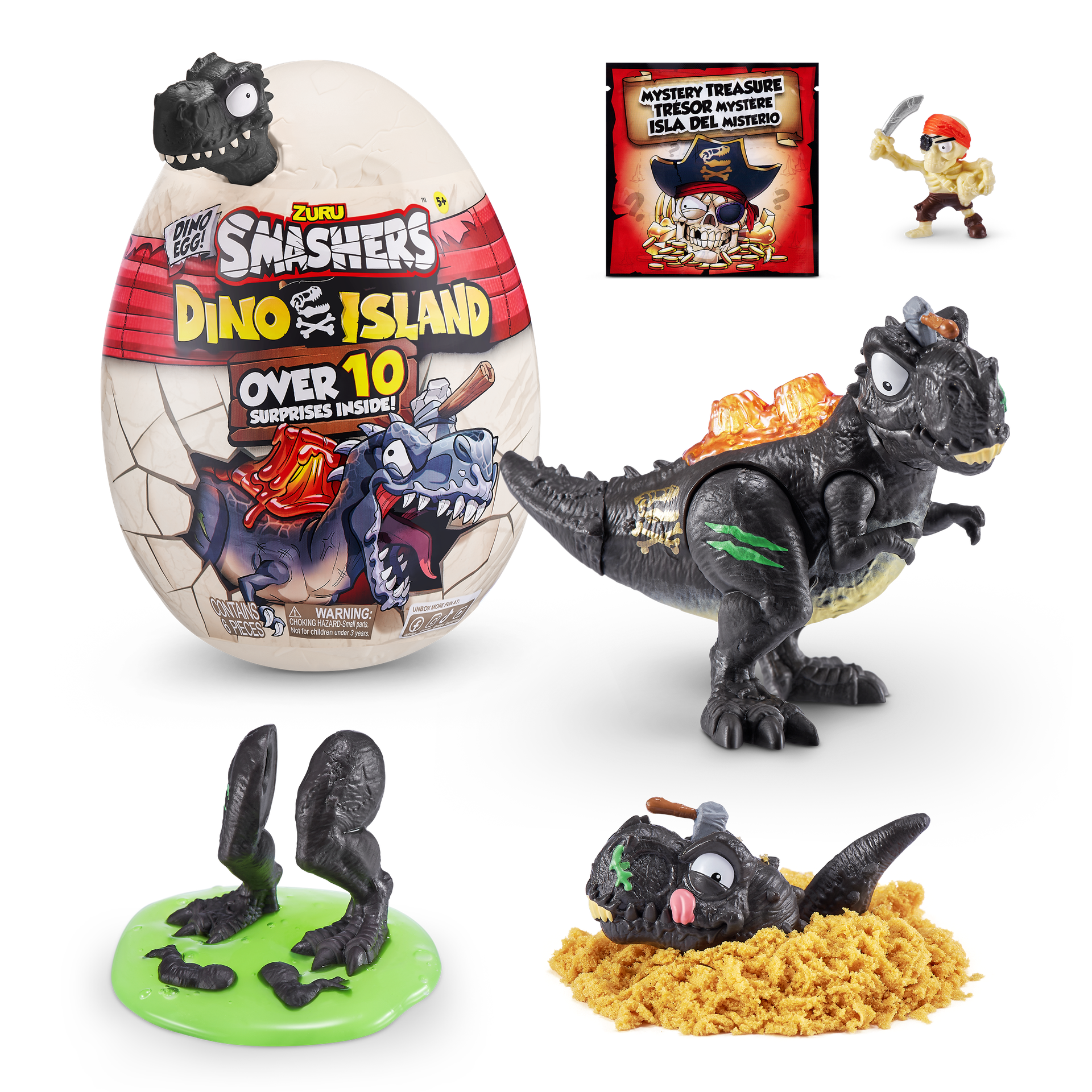 - السلايم والرمل: توفر مركبات Smashers تجربة لعب حسية مذهلة! يتم إخفاء قطع الديناصورات في الرمال الناعمة و السلايم شديد التمدد ليستكشفه الأطفال ويكتشفوه!