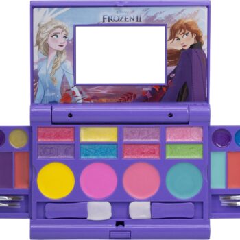 7,500 Let your child bring Arendelle glam wherever they go with this Disney Frozen Slide-Out Beauty Compact! Featuring fan-favorite characters like Elsa and Anna, this compact is packed with magical beauty fun in one sleek, travel-friendly design. Slide it open to reveal a full palette of shimmering shades, including lip gloss wells, cheek shimmers, and shadows in frosty, princess-inspired colors. The compact also includes mini application brushes and a built-in mirror, so your little one can create their own royal look anytime, anywhere. The kid-friendly formula is non-toxic and gentle on young skin, making it perfect for first-time makeup play. Whether they’re getting ready for a Frozen-themed party, a sleepover, or simply enjoying dress-up at home, this compact encourages creativity, confidence, and imaginative fun. Compact enough for purses, backpacks, or travel bags, it’s a magical gift for Frozen fans ages 3 and up. With everything they need in one dazzling case, the Frozen Beauty Compact is where self-expression meets sparkle and storytelling!