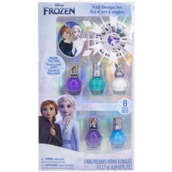 3,500 Immerse yourself in the world of Frozen with this fantastic set of two nail polishes. Each bottle in this set is decorated with an image of everyone’s favorite Disney Frozen characters!