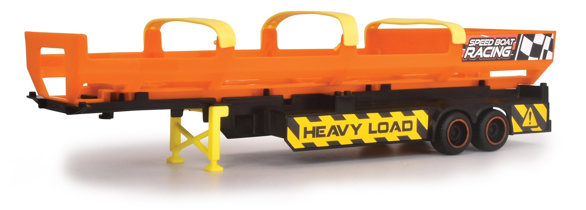 • Off to the next race! – This large truck is modelled on a Mack Trucks original and comes with a 28 cm long speed boat that is waiting to be transported to the next race.