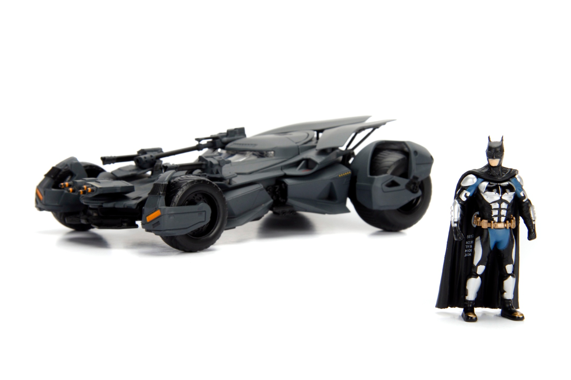 Unite the League! No Batman collection is complete without the Justice League Batmobile. Featuring a die-cast body and rubber tires, this 1:24 scale Batmobile is a must have in any collection! This vehicle also includes a 2.75 ”Batman die-cast figure. Collect them all today