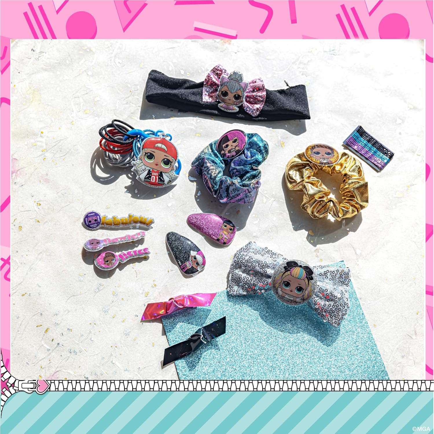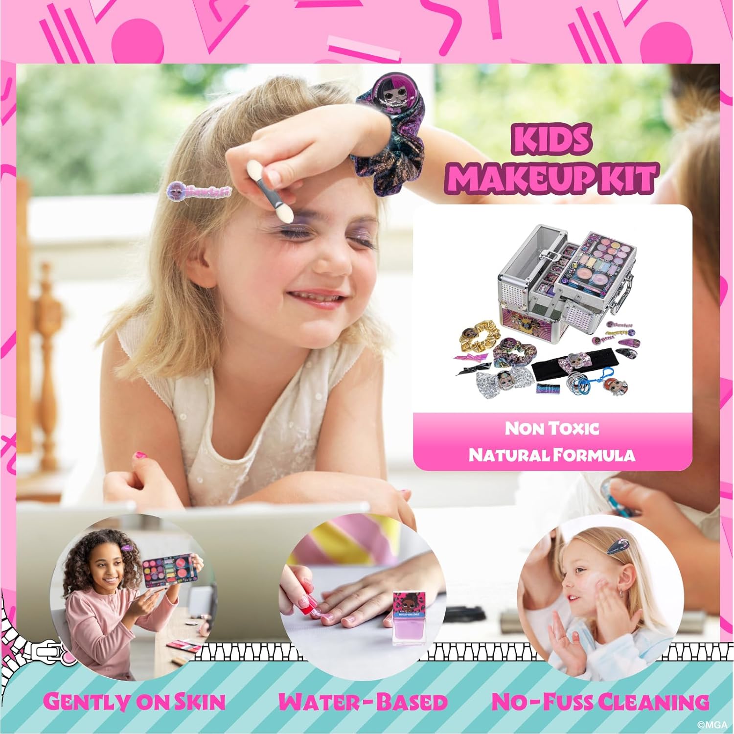 - KIT INCLUDES : 3 Brushes For Lip, Eye & Cheek. 2 Toe Spacers. 4 Nail Polishes, 1 L.O.L Train Case. 1 L.O.L Nail File. 2 Hair Bows. 1 Sequin Hair Bow W/ L.O.L Puffy Icon. 2 Scrunchies W/ Glittery Puffy L.O.L Icon. 1 Headband W/ Bow and Puffy L.O.L Icon. 3 Bobby Pins W/ Puffy Glittery L.O.L Icon. 15 Colorful Glittery Bobby Pins. 2 Snap Hair Clips W/ Puffy L.O.L Icon. 20 Hair Ties on Clip. 1 Glittery Face/eye/lip Pencil. 2 Cheek Shimmer, 5 Eye Shimmers, 9 Lip Gloss and more! See Description.
