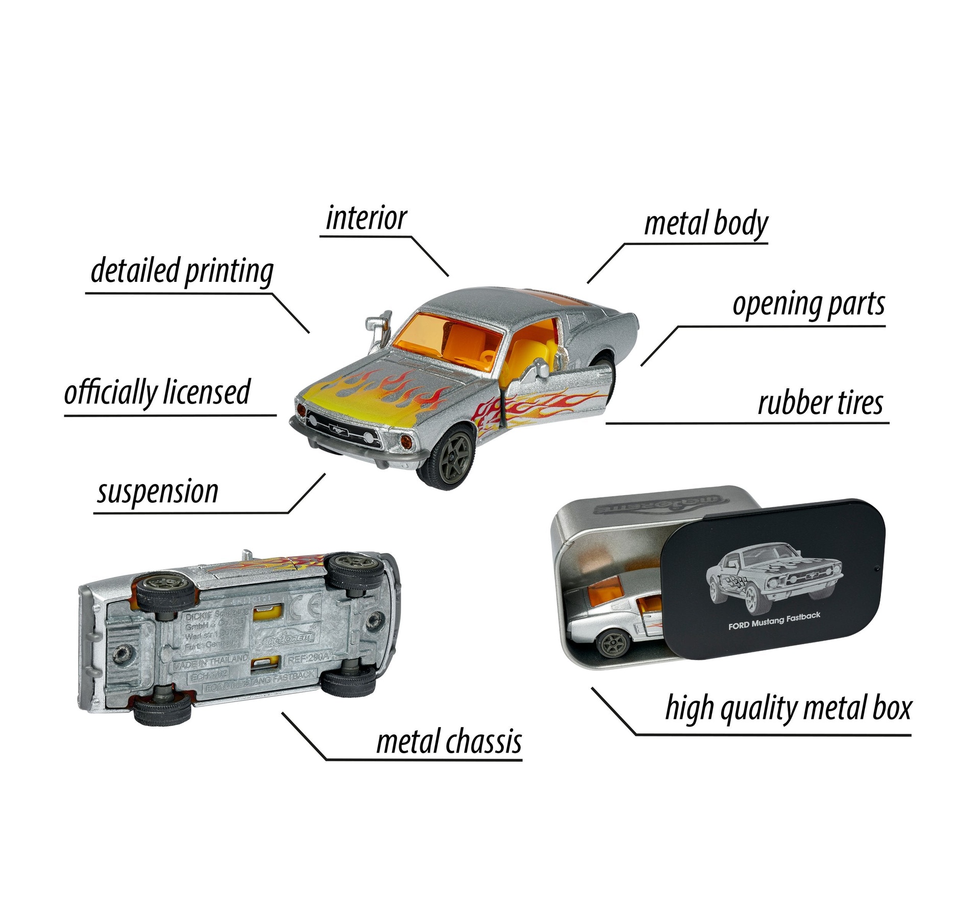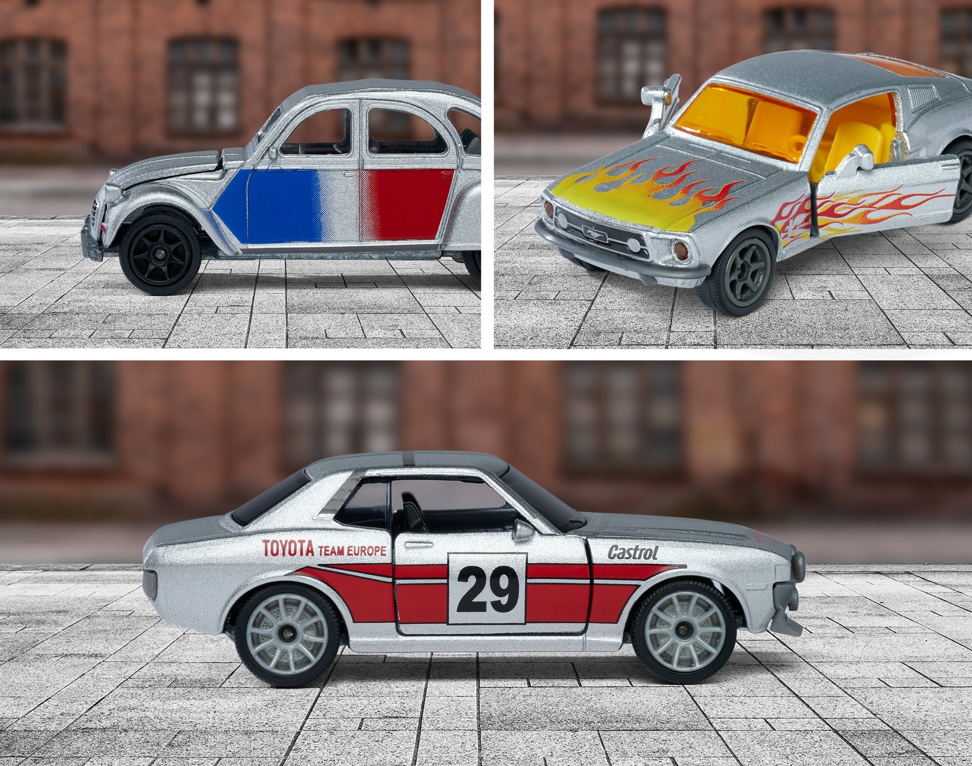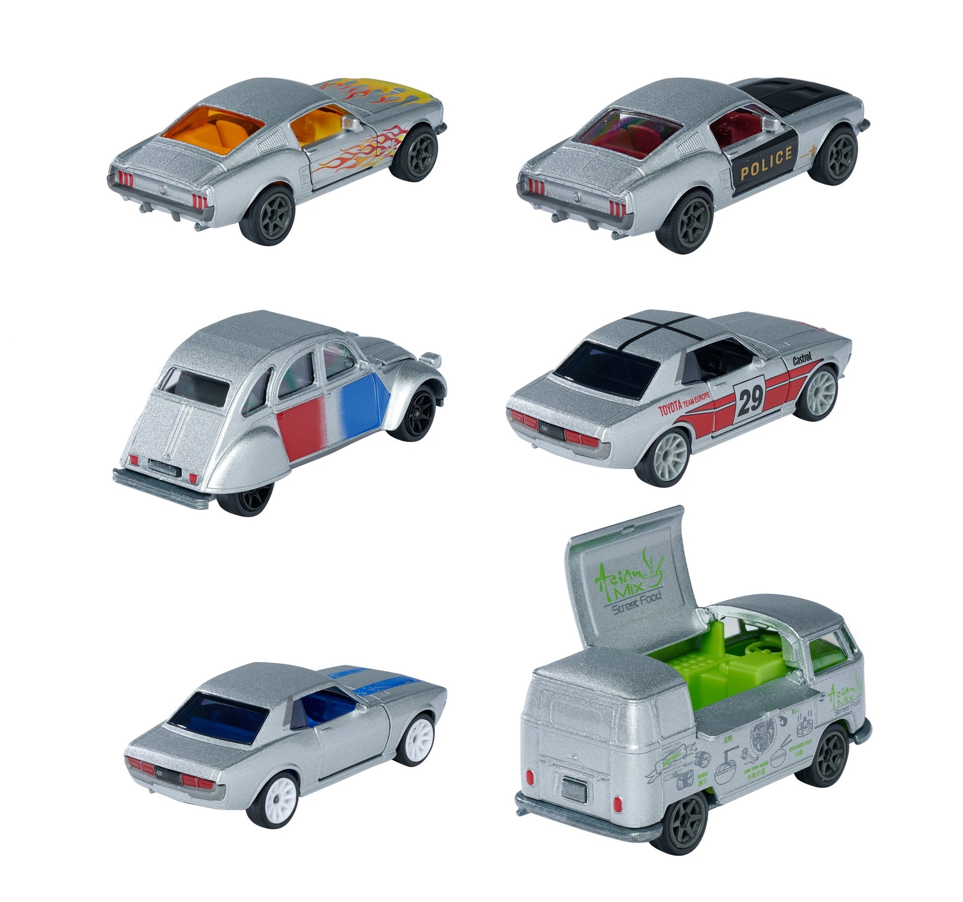 • Models: Ford Mustang Fastback “Police”, Ford Mustang Fastback “Flame”, Citroën 2 CV, Toyota Celica GT Coupé Ralley, Volkswagen VW T1 Foodtruck