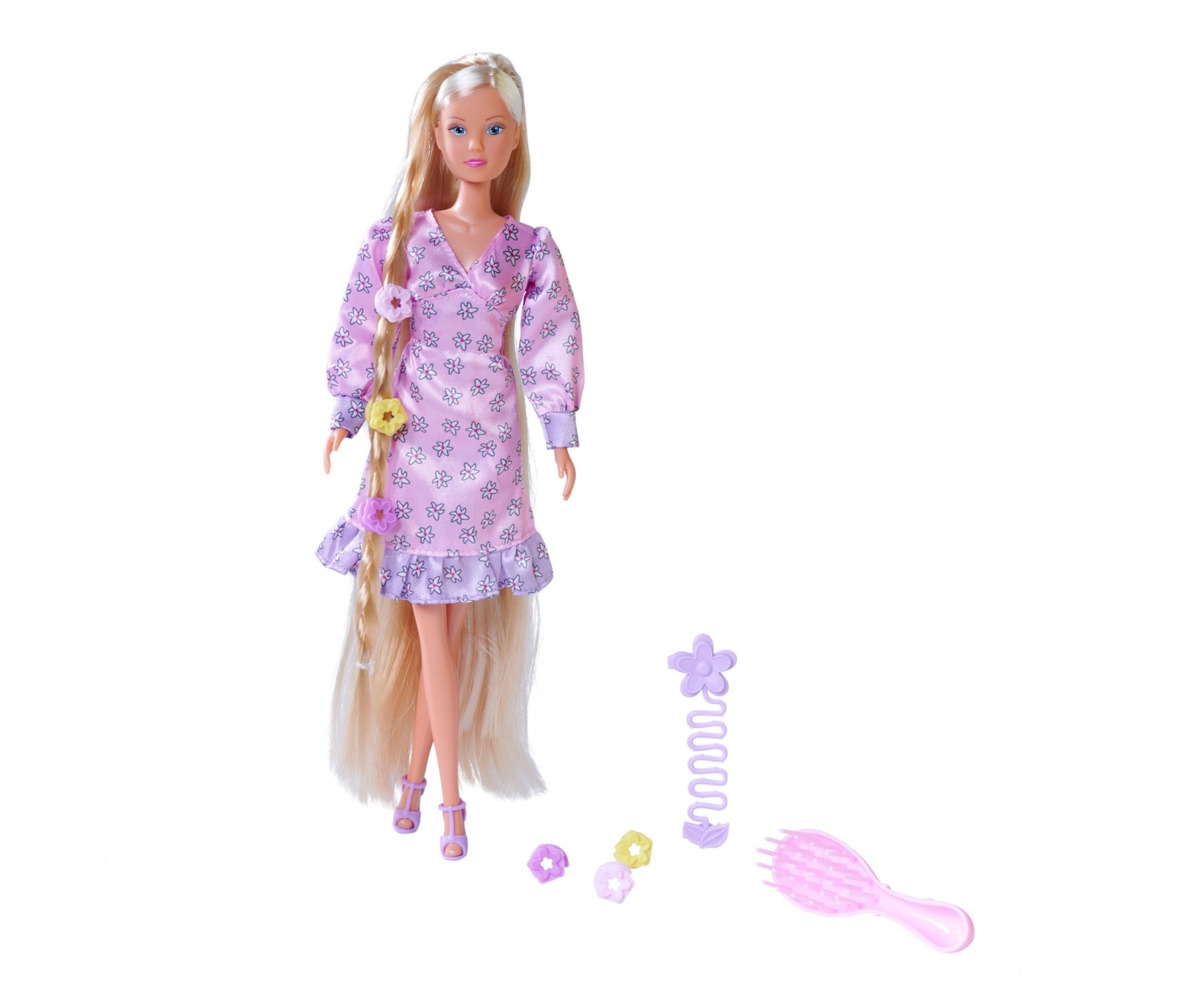 Steffi with extra long hair with 6 clips, braiding aid and comb. – Dimensions (height): 29cm. – Age: from 3 years.